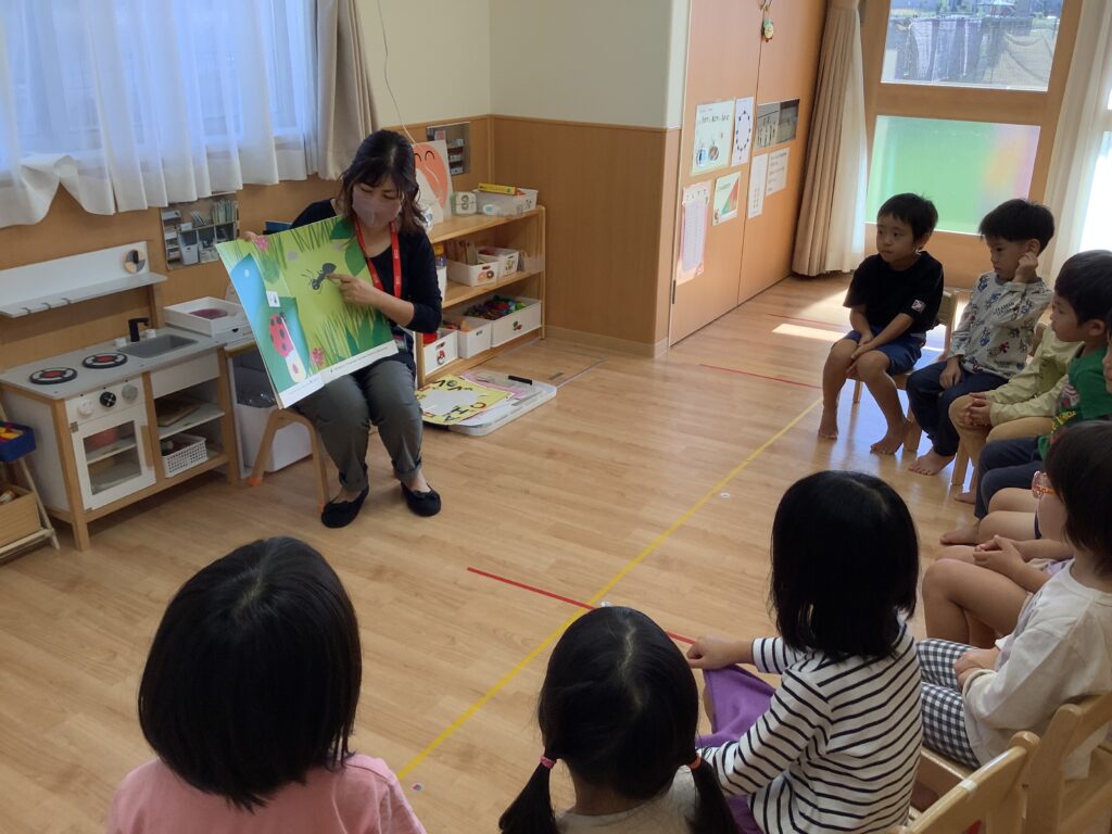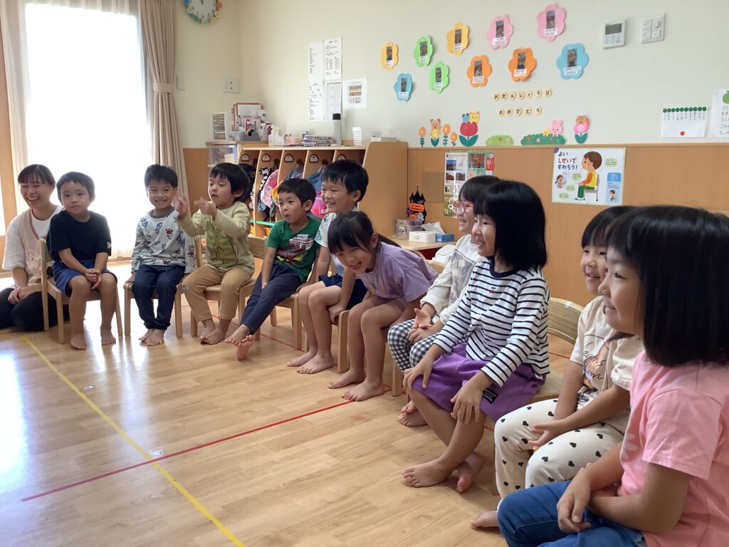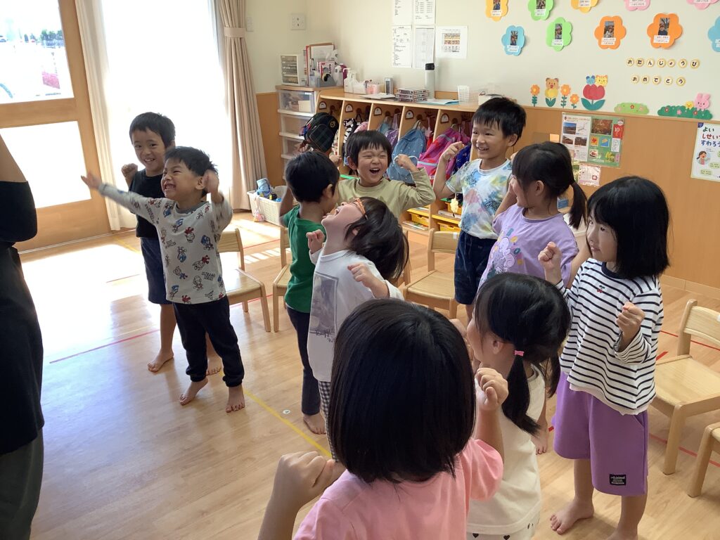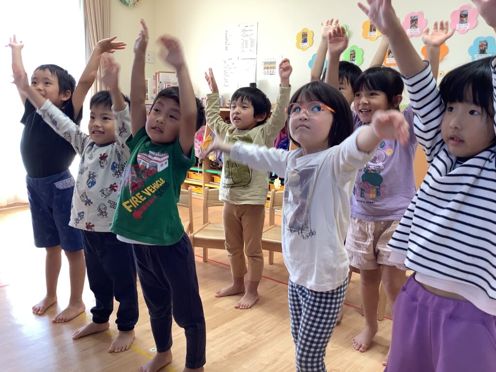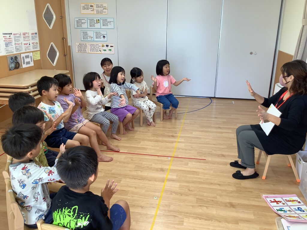 えいご🎵きょうしつ 2025-10-24 やっと厳しい暑さも過ぎ、秋🍂が感じられる毎日になりました。 伊都の杜園では毎週金曜日に、ぱんだ組🐼、きりん組🦒、らいおん組🦁の子ども達は、ECC講師による英語のレッスンを受けています🤩 今日は、きりん組のお友達のレッスンの様子をお伝えします! 今日も元気にはじまりました!まずは、みんなで声を出しながら、じゃんけんの手遊びです✊✌✋そのあとは、椅子から立って・・先生の真似をしながら、歌の振り付けの練習。練習が終わると、ミュージックスタート🎵みんな、ノリノリです🥰楽しそうな笑顔に、こちらも癒されます💕 レッスンの内容も多彩です✨単語を覚えたり、先生の合図に合わせて体を使ったり、歌に合わせて踊ったり🕺!時には、先生のクイズに答えて・・?正解✨しました!先生も、たくさん褒めてくれましたよ👍 次は、椅子に座ってアルファベットの歌を歌います🎵どのお友だちもしっかり覚えていて、完璧✨です!教室は、元気な声に包まれました😁そして今日は、アルファベットのUを教わりましたよ。 最後は、絵本の読み聞かせ📚です。時々先生からクイズも出ましたよ!みんな物語の中に、吸い込まれていきました🤗今日も楽しいレッスンだったね!とっても上手だったよ✨