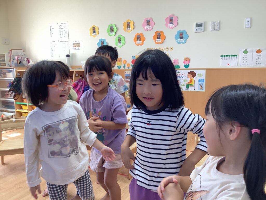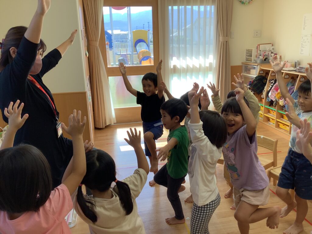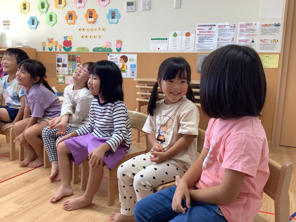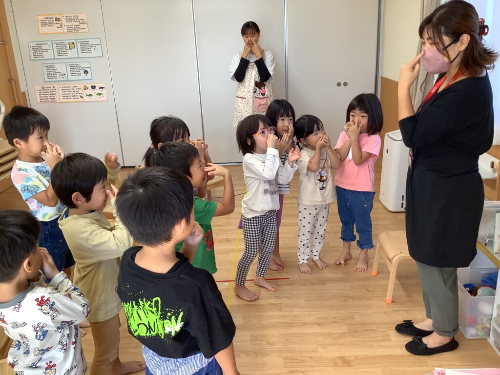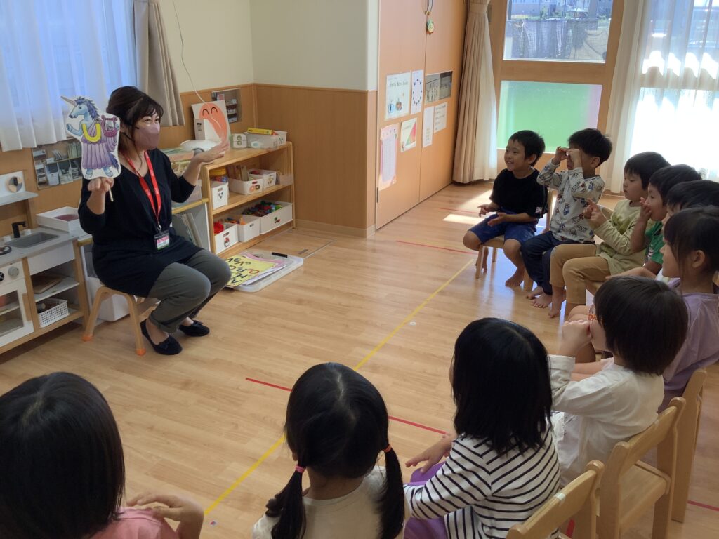 えいご🎵きょうしつ 2025-10-24 やっと厳しい暑さも過ぎ、秋🍂が感じられる毎日になりました。 伊都の杜園では毎週金曜日に、ぱんだ組🐼、きりん組🦒、らいおん組🦁の子ども達は、ECC講師による英語のレッスンを受けています🤩 今日は、きりん組のお友達のレッスンの様子をお伝えします! 今日も元気にはじまりました!まずは、みんなで声を出しながら、じゃんけんの手遊びです✊✌✋そのあとは、椅子から立って・・先生の真似をしながら、歌の振り付けの練習。練習が終わると、ミュージックスタート🎵みんな、ノリノリです🥰楽しそうな笑顔に、こちらも癒されます💕 レッスンの内容も多彩です✨単語を覚えたり、先生の合図に合わせて体を使ったり、歌に合わせて踊ったり🕺!時には、先生のクイズに答えて・・?正解✨しました!先生も、たくさん褒めてくれましたよ👍 次は、椅子に座ってアルファベットの歌を歌います🎵どのお友だちもしっかり覚えていて、完璧✨です!教室は、元気な声に包まれました😁そして今日は、アルファベットのUを教わりましたよ。 最後は、絵本の読み聞かせ📚です。時々先生からクイズも出ましたよ!みんな物語の中に、吸い込まれていきました🤗今日も楽しいレッスンだったね!とっても上手だったよ✨