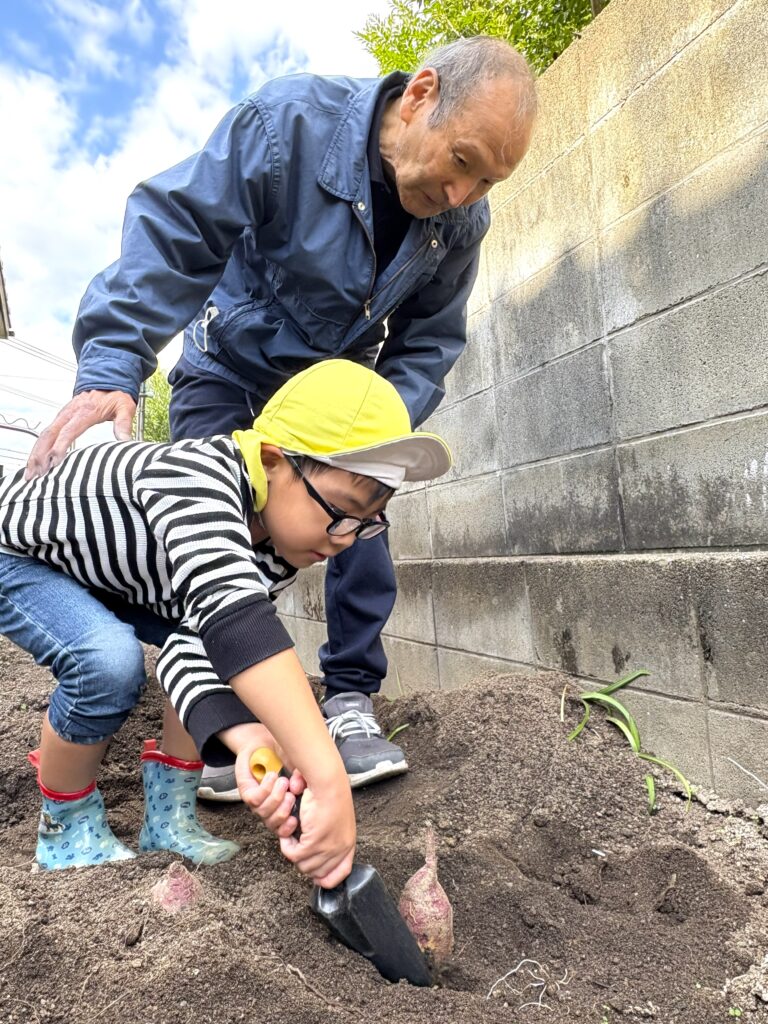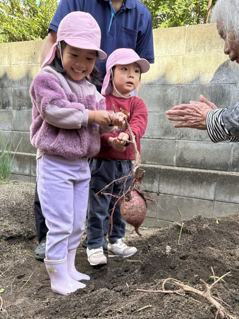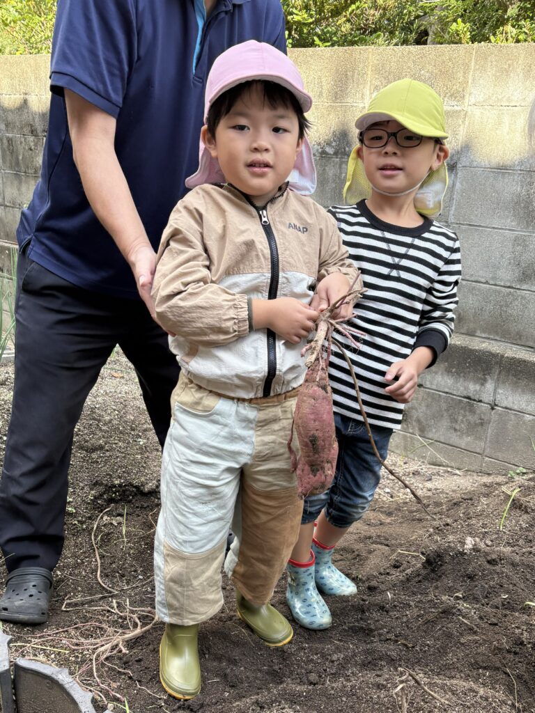 お芋掘り🍠🍂 2025-10-31 10月29日(火)にきりん組、らいおん組のこどもたちが『こりん神在』さんへお芋掘りに行きました🤗✨ 大きいお芋ゲット!!🍠 たくさんの秋の実りを収穫できました!今年のお芋はとても大きかったです😲! こりん神在のおじいさん、おばあさん、職員のみなさまいつもありがとうございます😊✨