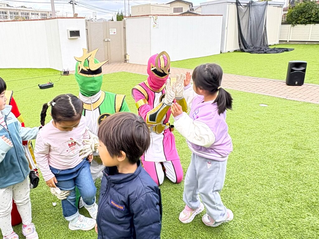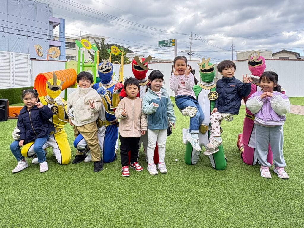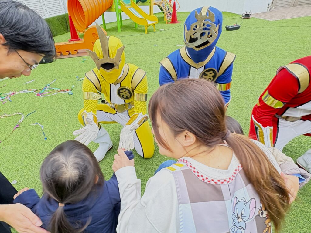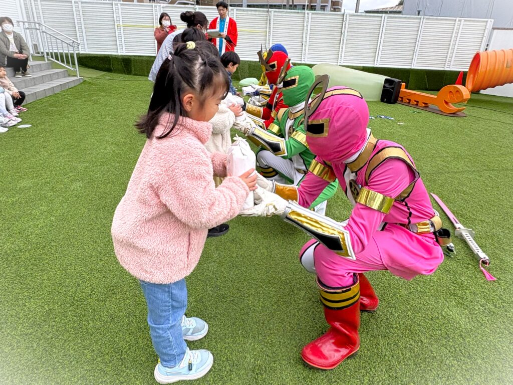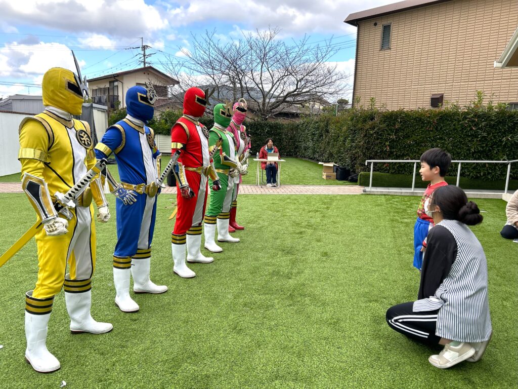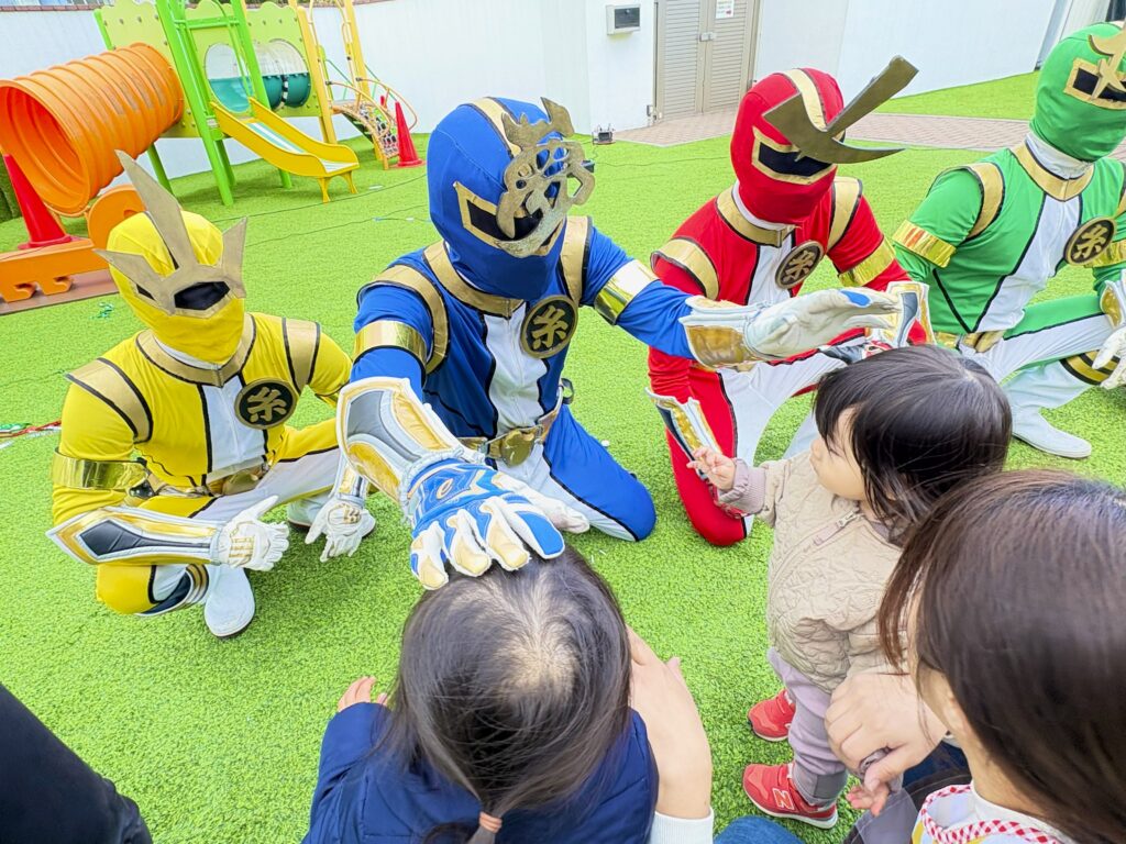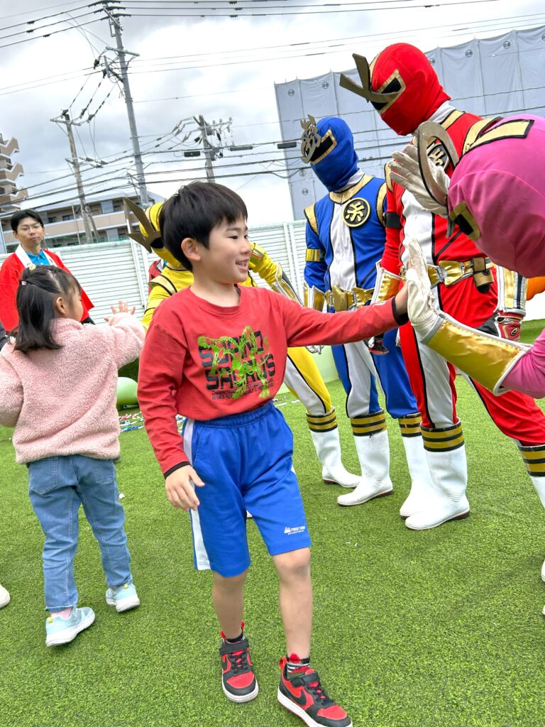 記念撮影後にも子どもたちとハイタッチをしてくれるなど、とっても優しいヒーローたちでした✨