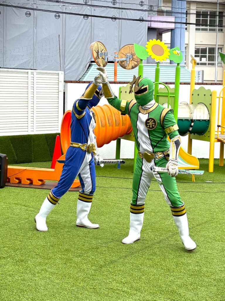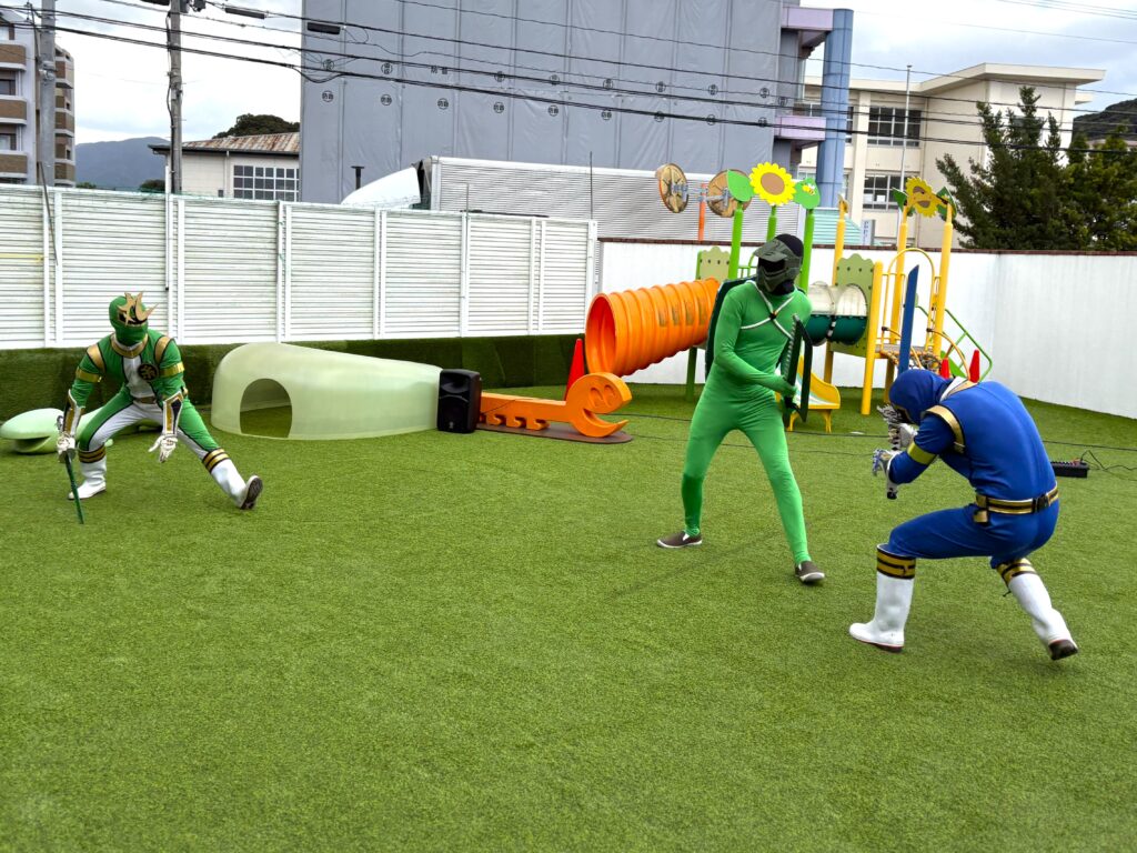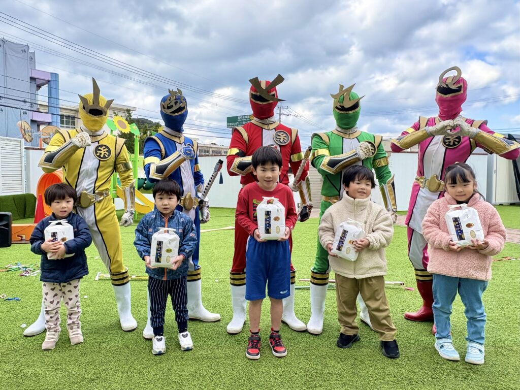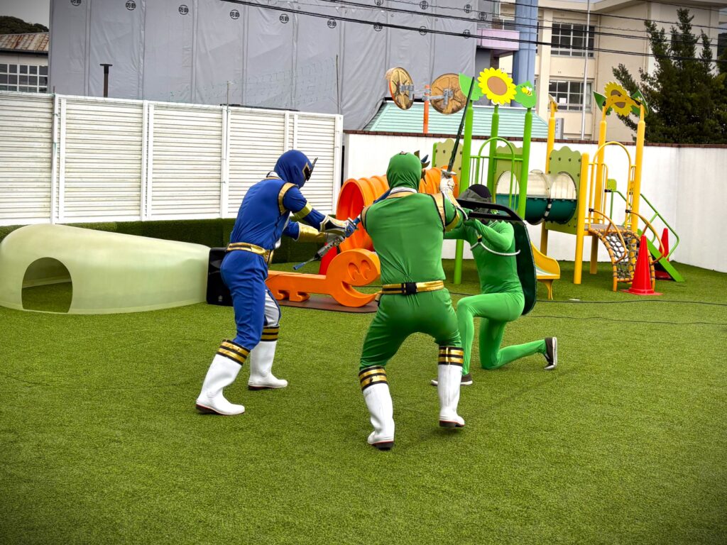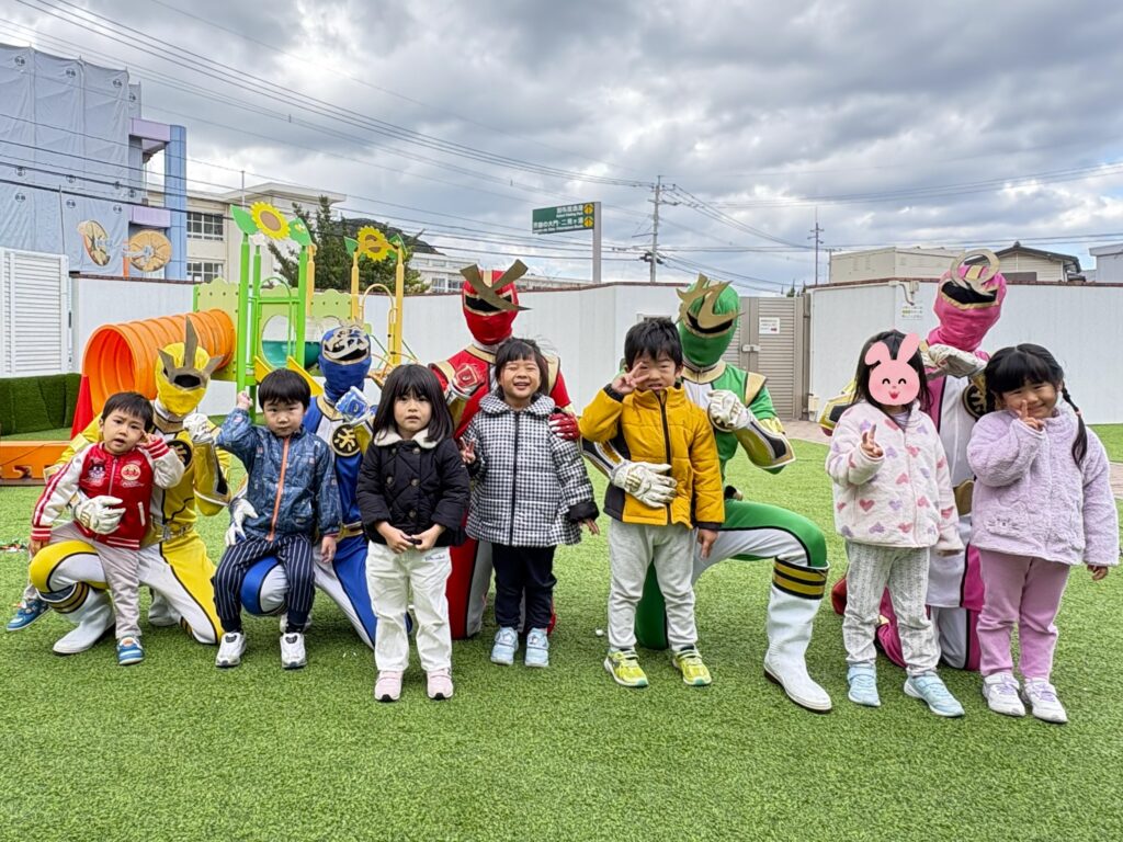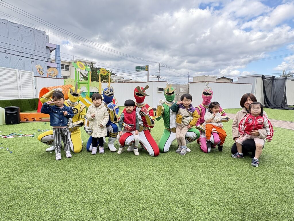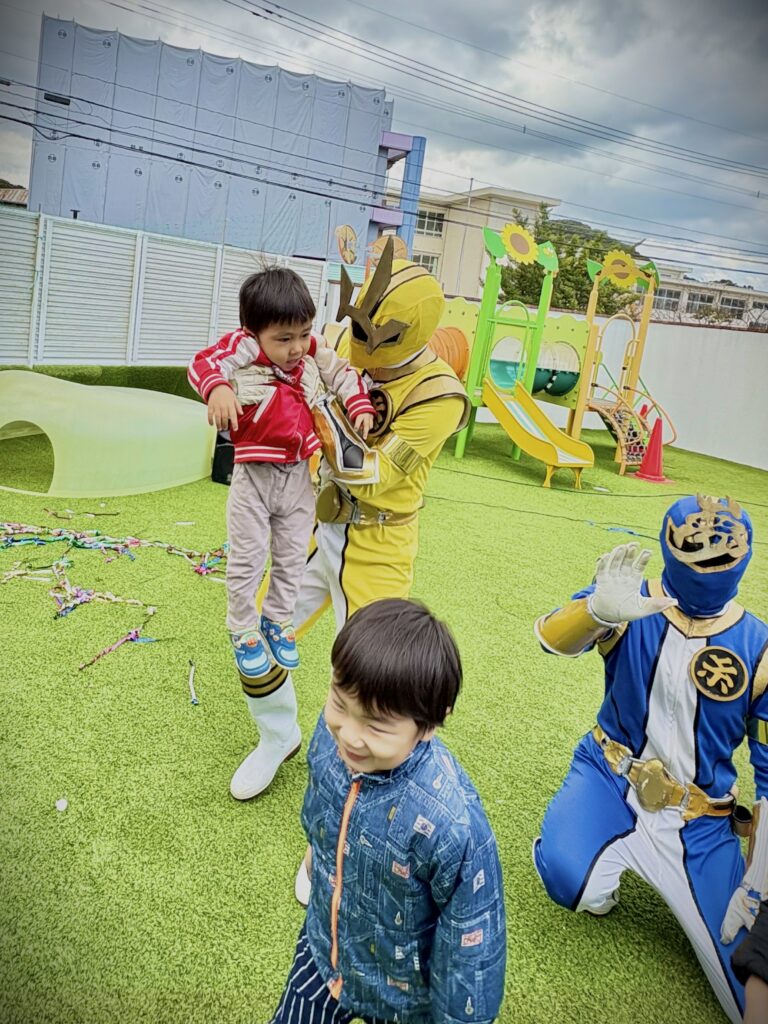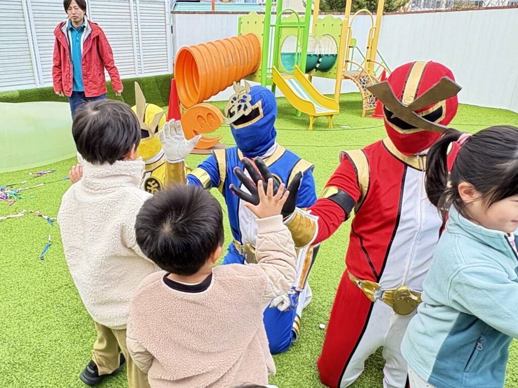 記念撮影後にも子どもたちとハイタッチをしてくれるなど、とっても優しいヒーローたちでした✨