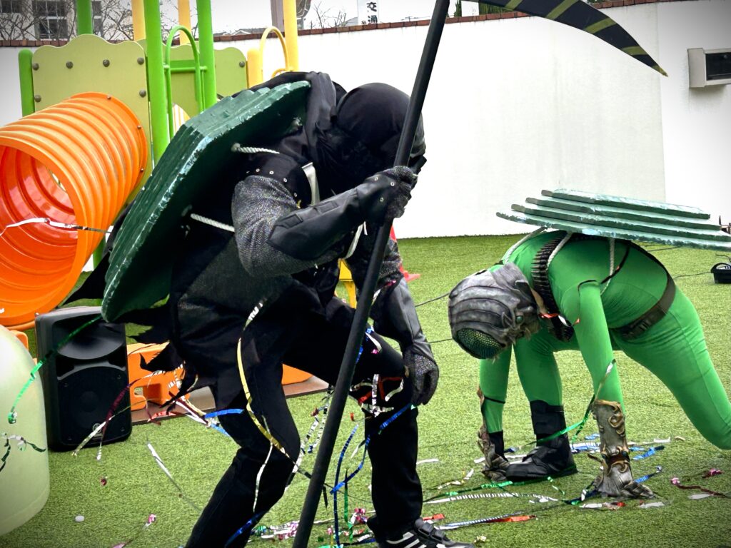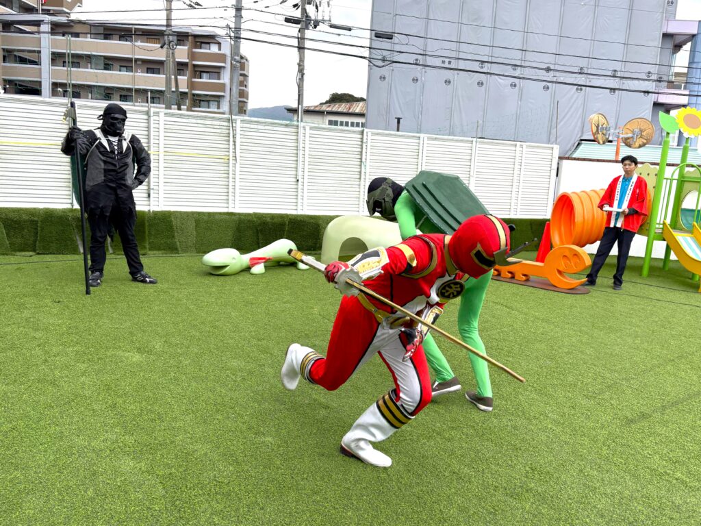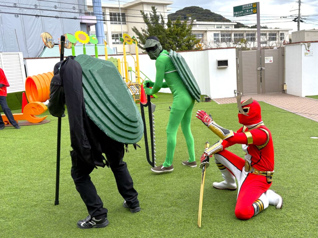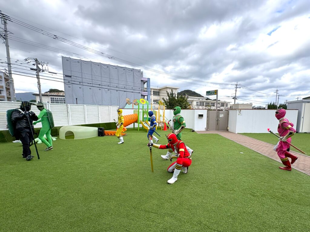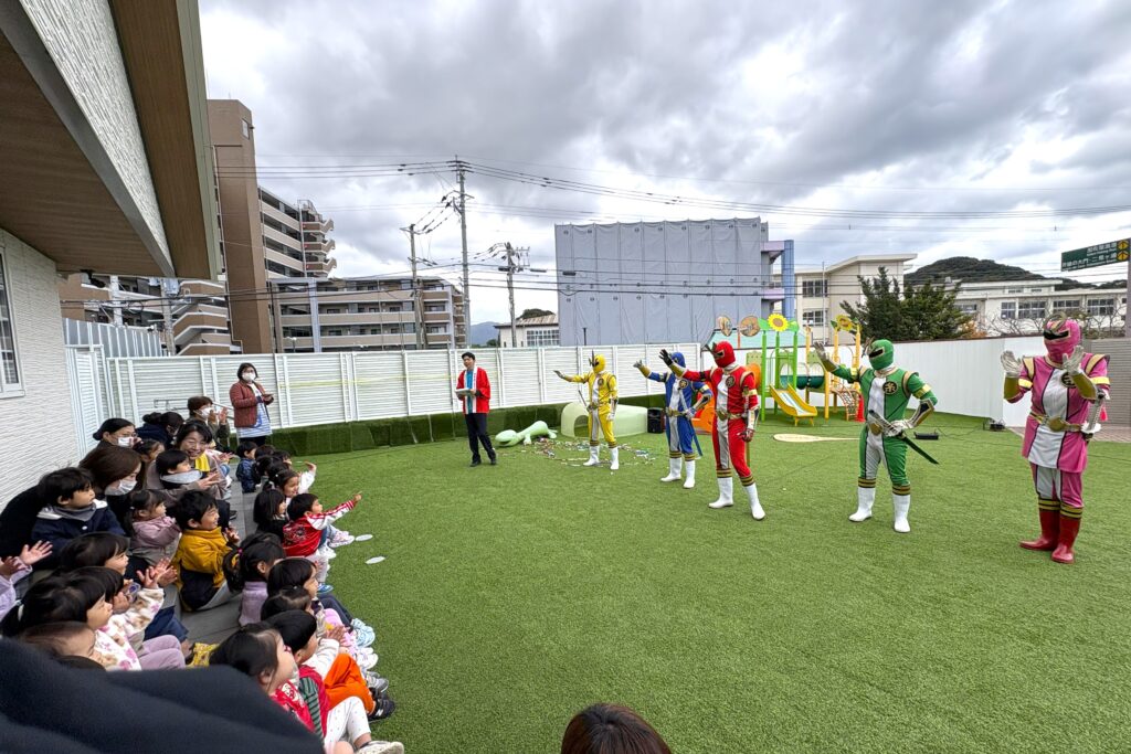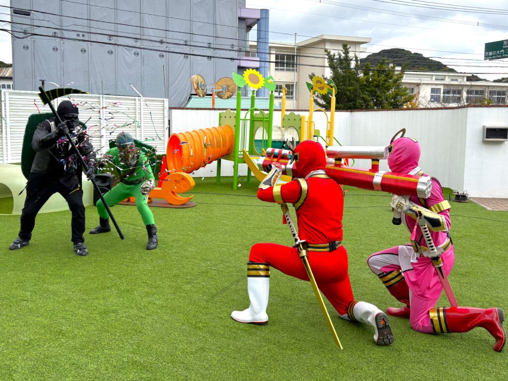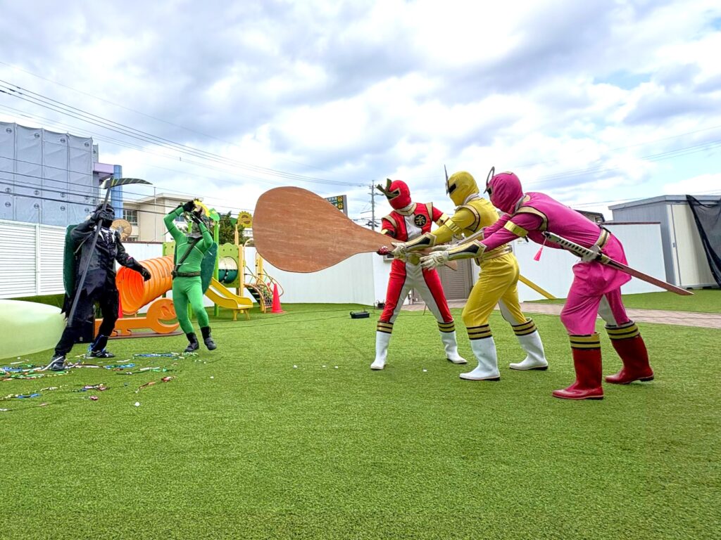 記念撮影後にも子どもたちとハイタッチをしてくれるなど、とっても優しいヒーローたちでした✨