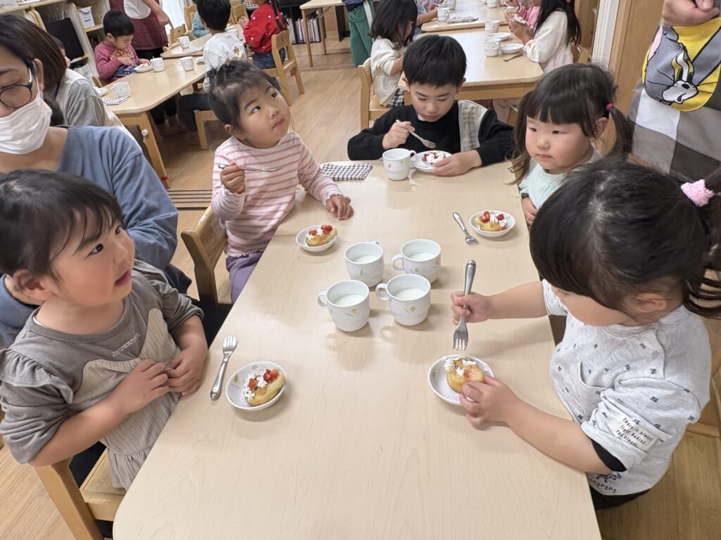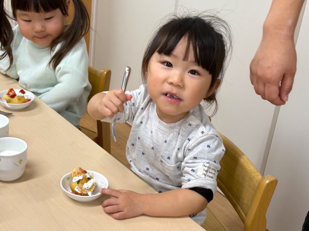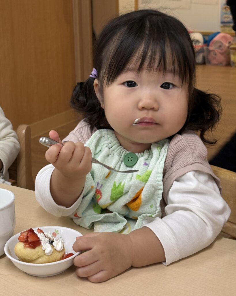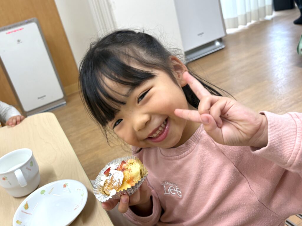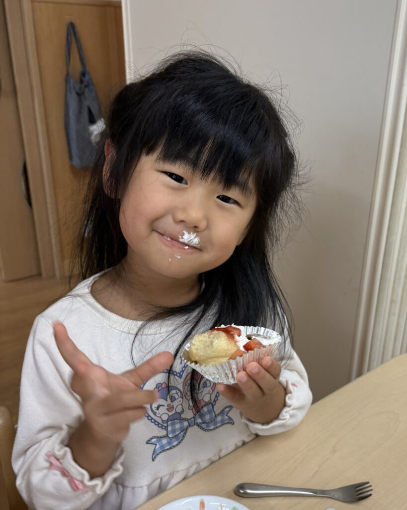 おやつはみんなで食べましたよ!サンタさんのケーキも可愛いですね🎅💗