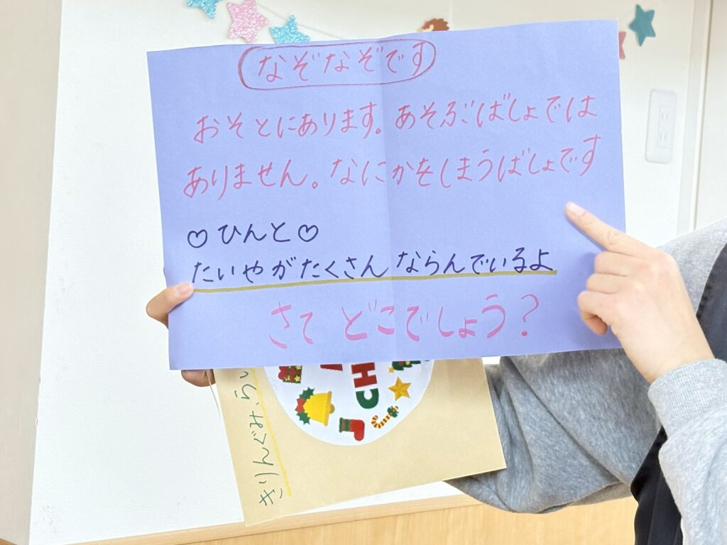 『この中に、プレゼントがある場所のヒントを書いています!』