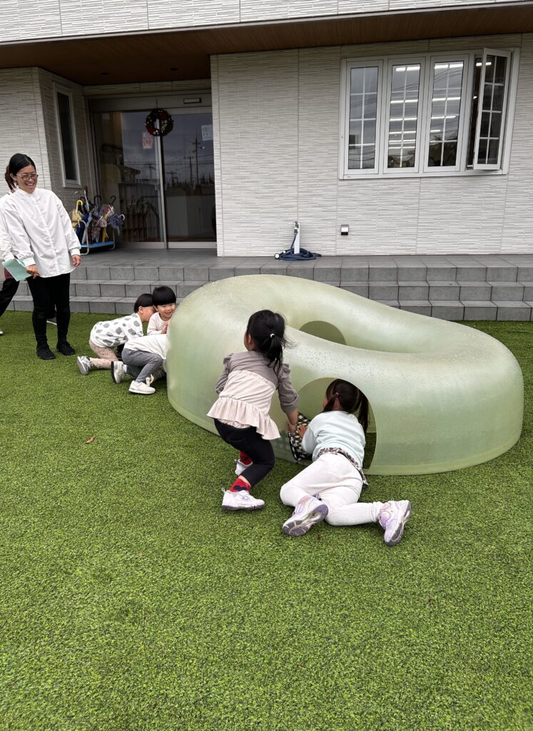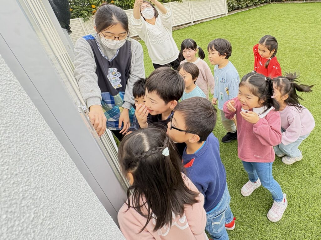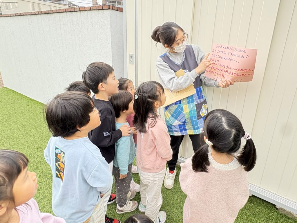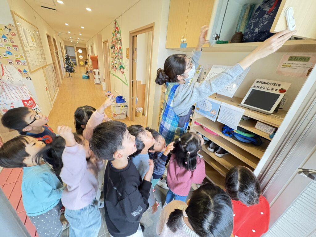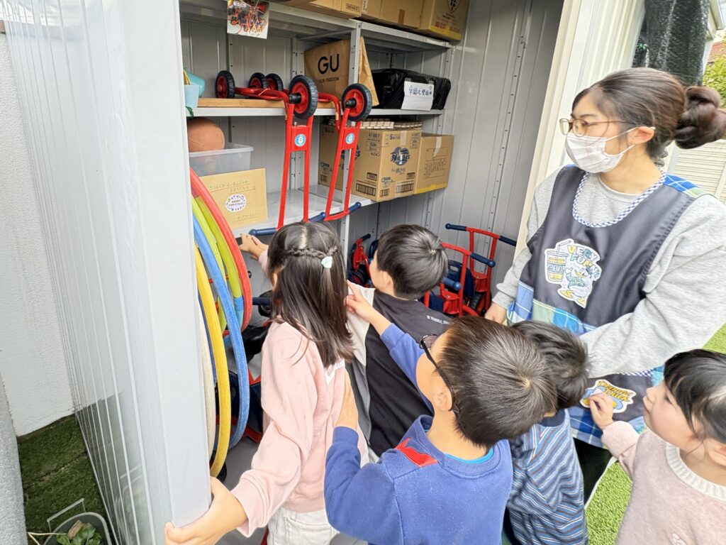 一目散に園庭の倉庫の前へ!果たしてプレゼントはあるのでしょうか🫣