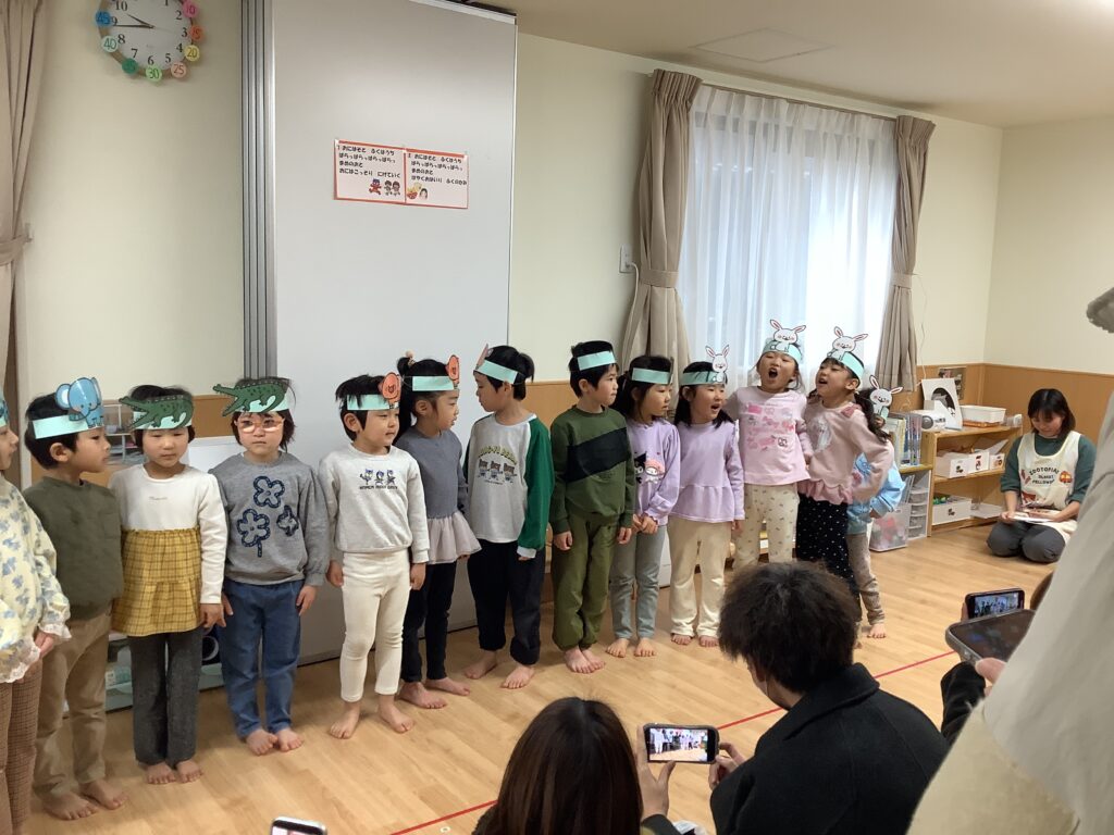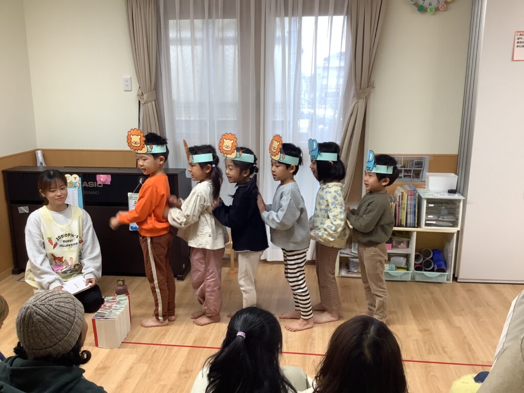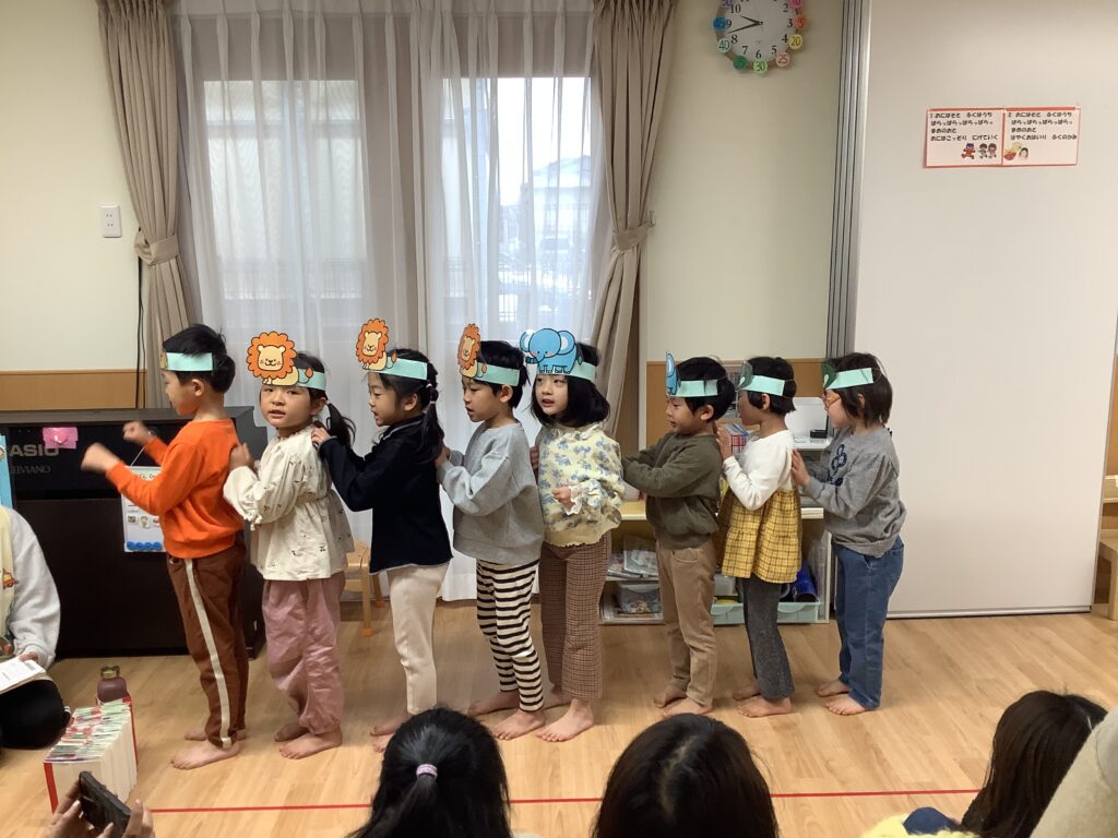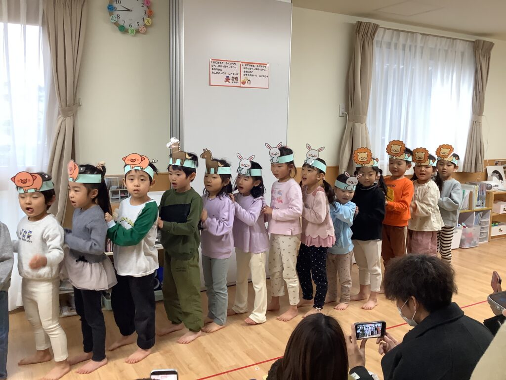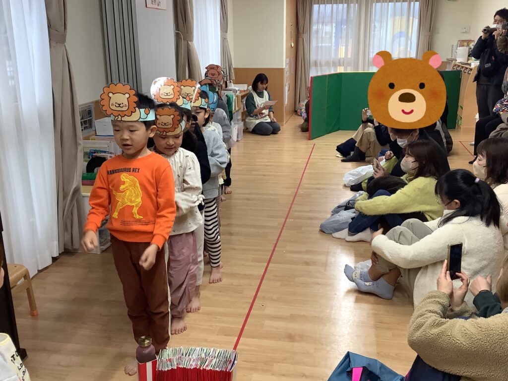 伊都の杜の保育参観✨ 2026-02-08 2月の土曜日、伊都の杜園で保育参観を実施しました。おともだちはみんな保護者の方々と登園し、各クラスに分かれて参観が始まりました。 担任より1年間の成長の振り返りをお伝えし、その後は親子遊びや親子製作、以上児さんクラスはECC講師による英語レッスンもありました。 また、きりん・らいおん組は合同で、「もりのおふろ」の劇を披露しました🤩たくさんの森の動物🐘🐷🐴が出てきて、それぞれがその動物らしく見えるように、子ども達だけで考え、工夫して演じましたよ!✨ 給食の時間には、ひよこ0歳・1歳児のクラスで給食室の栄養士による個別相談も行われました😋日頃からのお食事の様子など、お話を共有できました。それでは、各クラスの様子を写真でお伝えします📸! ひよこ0歳児🐣 ひよこ1歳児🐤 うさぎ組🐰 ぱんだ組🐼 きりん組🦒・らいおん組🦁の劇🎞️ ECC講師による以上児さんの英語教室(🐼・🦒・🦁) 保護者のみなさま、当日はお忙しい中多数のご出席をありがとうございました。 職員一同、引き続きお子さまの日々の成長を共に喜び合えたら、と願っています。どうぞよろしくお願い申し上げます。