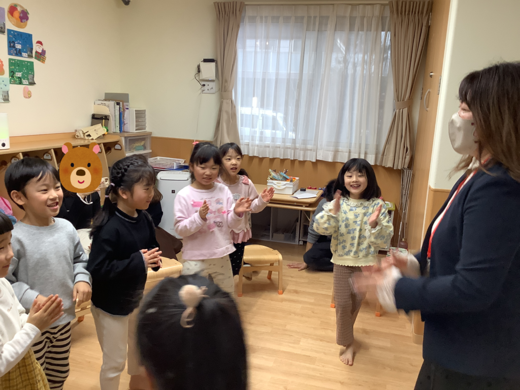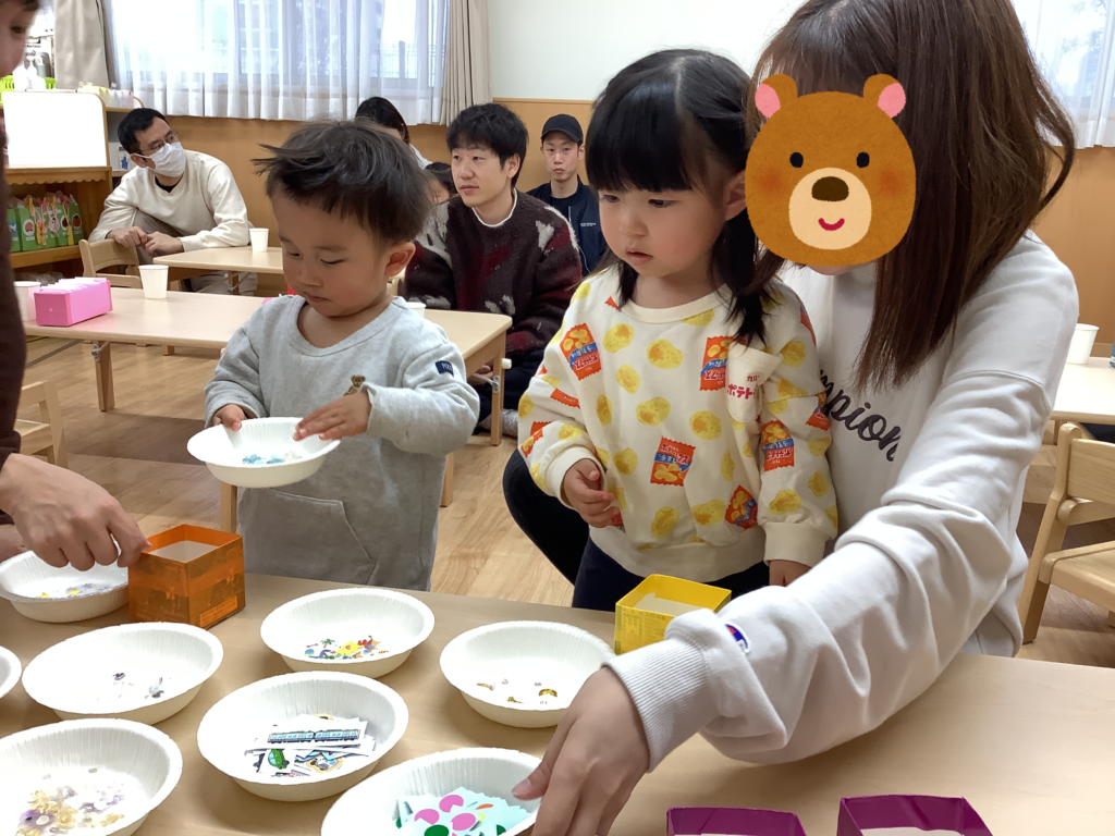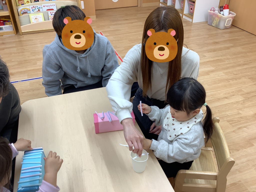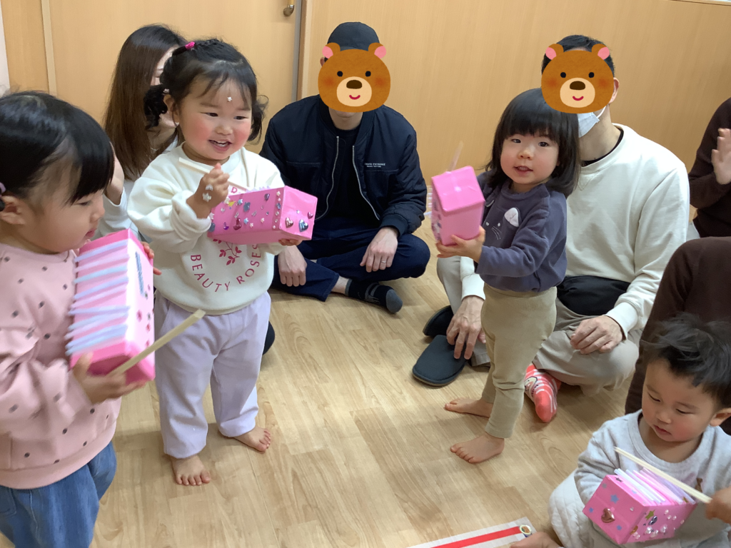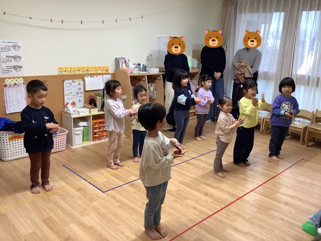 伊都の杜の保育参観✨ 2026-02-08 2月の土曜日、伊都の杜園で保育参観を実施しました。おともだちはみんな保護者の方々と登園し、各クラスに分かれて参観が始まりました。 担任より1年間の成長の振り返りをお伝えし、その後は親子遊びや親子製作、以上児さんクラスはECC講師による英語レッスンもありました。 また、きりん・らいおん組は合同で、「もりのおふろ」の劇を披露しました🤩たくさんの森の動物🐘🐷🐴が出てきて、それぞれがその動物らしく見えるように、子ども達だけで考え、工夫して演じましたよ!✨ 給食の時間には、ひよこ0歳・1歳児のクラスで給食室の栄養士による個別相談も行われました😋日頃からのお食事の様子など、お話を共有できました。それでは、各クラスの様子を写真でお伝えします📸! ひよこ0歳児🐣 ひよこ1歳児🐤 うさぎ組🐰 ぱんだ組🐼 きりん組🦒・らいおん組🦁の劇🎞️ ECC講師による以上児さんの英語教室(🐼・🦒・🦁) 保護者のみなさま、当日はお忙しい中多数のご出席をありがとうございました。 職員一同、引き続きお子さまの日々の成長を共に喜び合えたら、と願っています。どうぞよろしくお願い申し上げます。