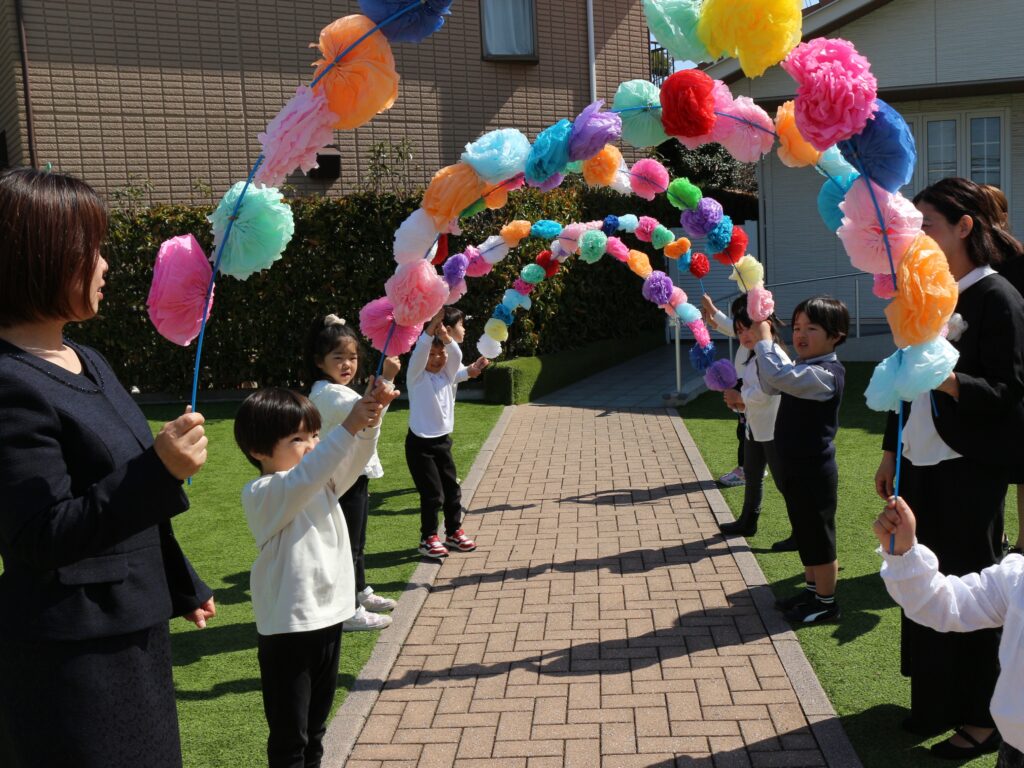 そのころお外では、在園児さんたちがお花のアーチを準備してスタンバイOK🫡